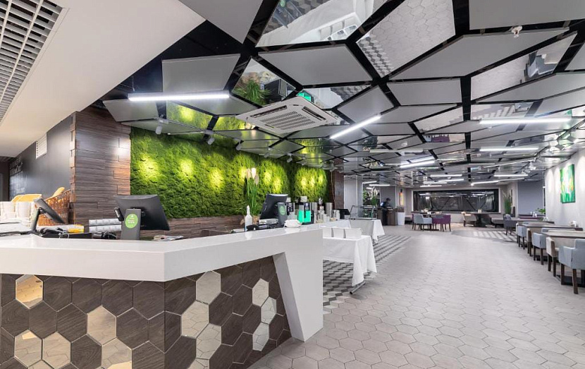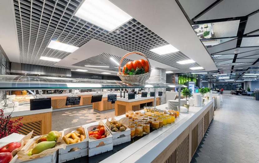 В ресторане «ARTist» организованы завтраки по системе «шведский стол». Ресторан предлагает блюда европейской кухни, банкетное обслуживание, бизнес-ланчи и авторское меню от шеф-повара. Дополнительно работают бар «Поль Гоген», банкетный зал, супермаркет «Перекресток» и кальянная «Мята Lounge».